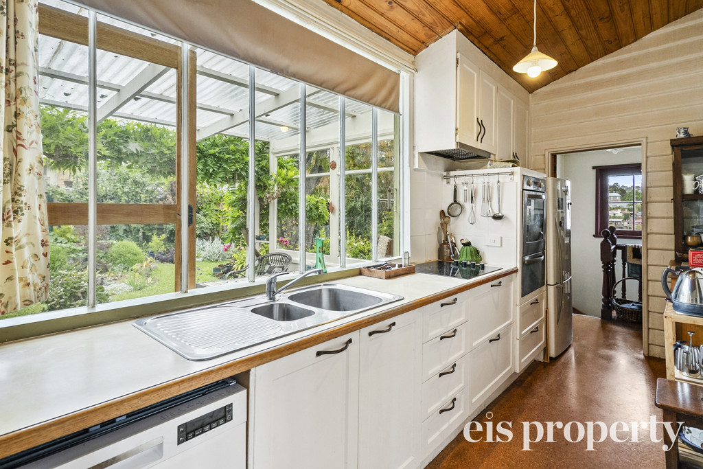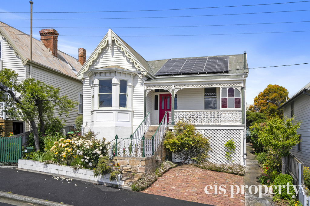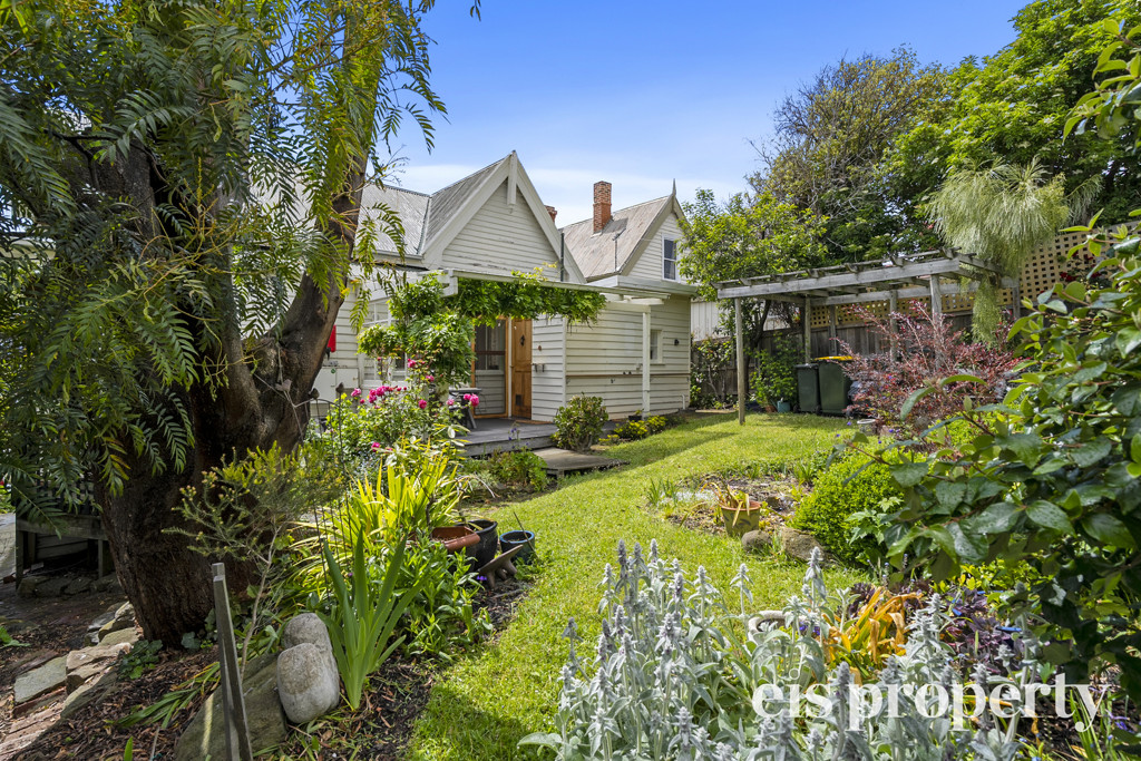 Tucked away in a quiet no-through street, this beautifully preserved 1886 weatherboard cottage blends period charm with modern comfort, all within walking distance of West Hobart’s shops, cafés and schools. Behind the sandstone steps and lace-trimmed verandah, you’re welcomed into a gracious entry hall with high ceilings and ceiling roses that set the tone for the character throughout. The main living and dining room is generous in scale, enhanced by a pretty bay window with a built-in bench seat capturing city views and water glimpses. The dining area flows seamlessly into the galley kitchen, thoughtfully updated with modern appliances and an atrium window framing the picturesque cottage garden. From here, step out to the undercover rear deck – a private, leafy space ideal for morning coffee or relaxed entertaining.
