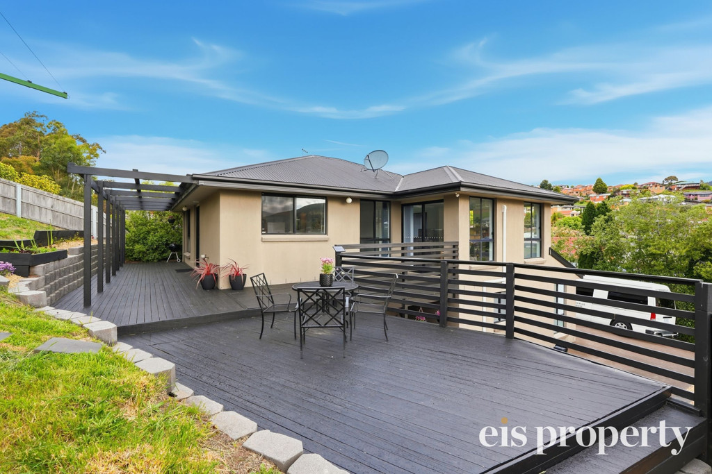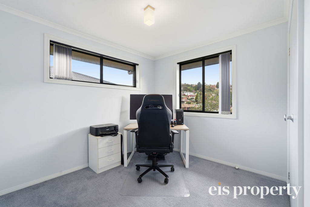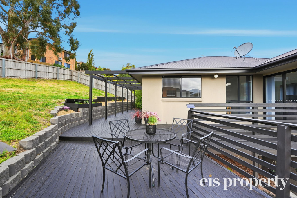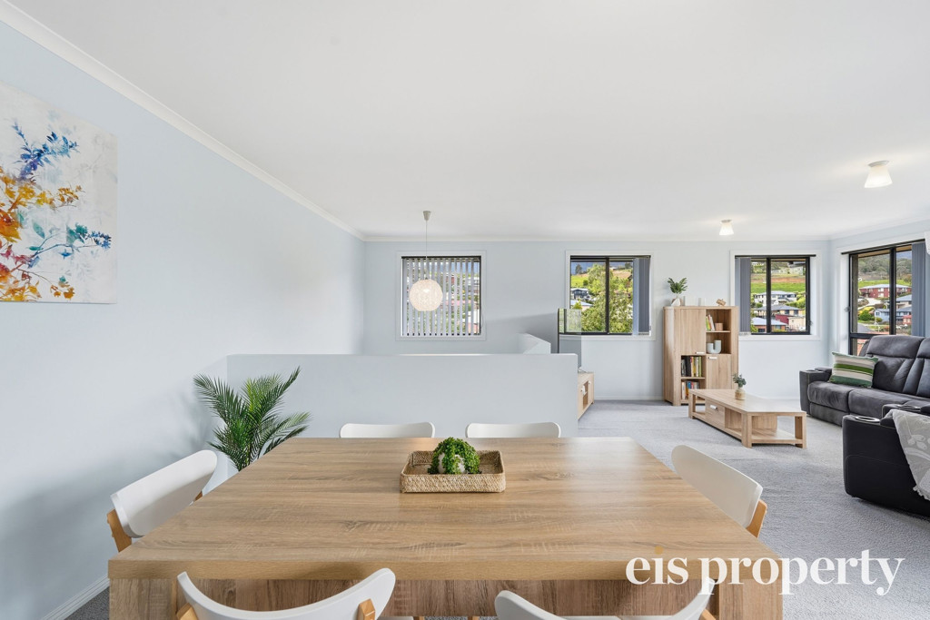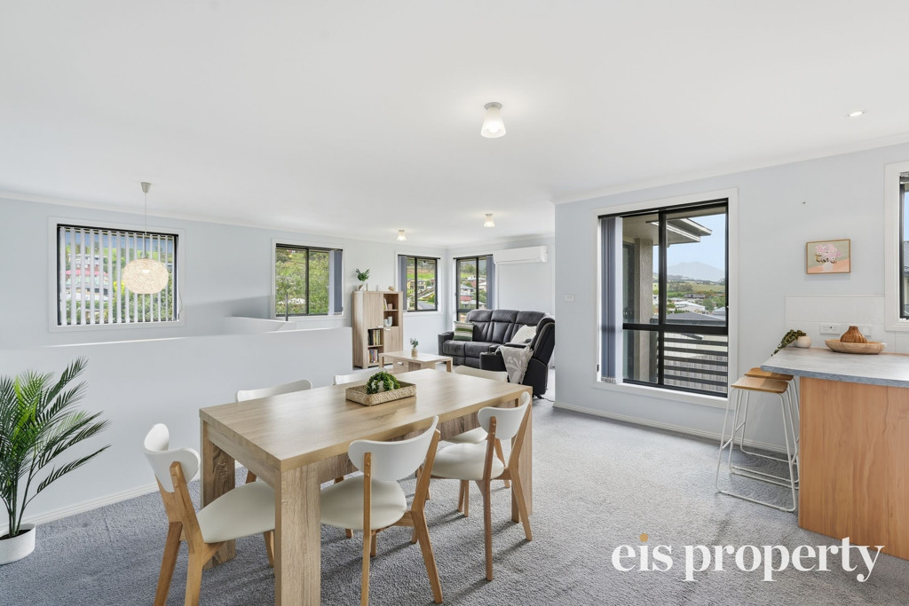 The layout is functional with all the living areas upstairs along with two of the three bedrooms. The larger than usual main bedroom is tucked in downstairs with its own roomy ensuite bathroom, walk-in robe and enough space to set up your own “bedroom retreat”. Stairs lead up to the open plan living space which is drenched in natural lighting and enjoys views out across the distant hilltops. A sliding door opens out from the lounge onto the fabulously impressive rear deck and backyard. This yard is fenced should you have a dog or wish to put in a cat run. Even the outdoor setting is set up ready for you to sit and soak up the sun, the tranquil setting and space on over 580sqm of land which is uncommonly large for a villa unit.