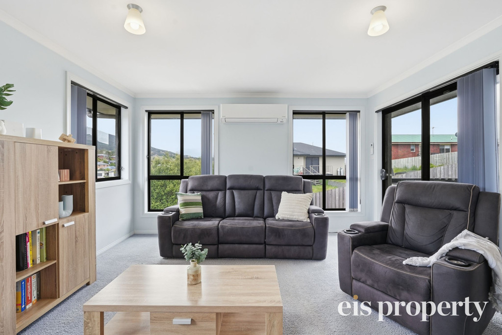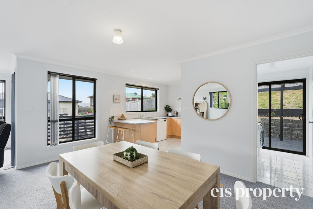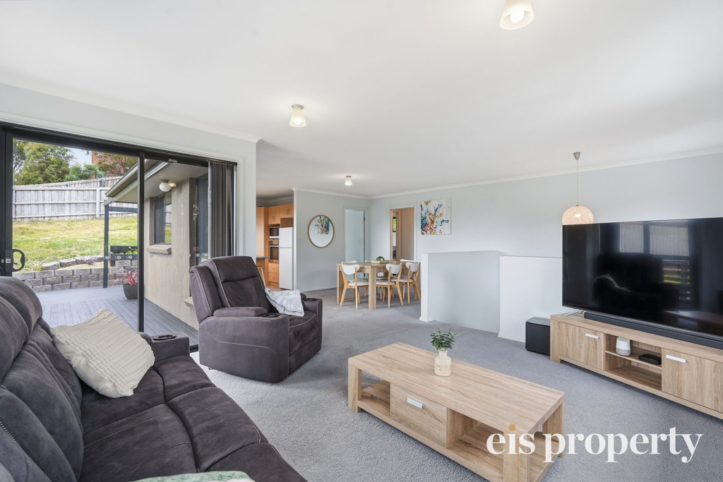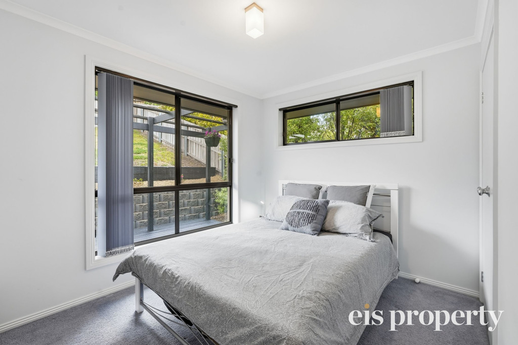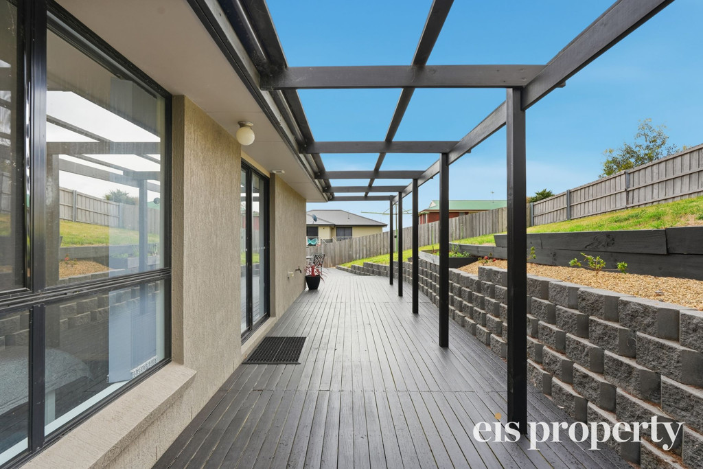 The layout is functional with all the living areas upstairs along with two of the three bedrooms. The larger than usual main bedroom is tucked in downstairs with its own roomy ensuite bathroom, walk-in robe and enough space to set up your own “bedroom retreat”. Stairs lead up to the open plan living space which is drenched in natural lighting and enjoys views out across the distant hilltops. A sliding door opens out from the lounge onto the fabulously impressive rear deck and backyard. This yard is fenced should you have a dog or wish to put in a cat run. Even the outdoor setting is set up ready for you to sit and soak up the sun, the tranquil setting and space on over 580sqm of land which is uncommonly large for a villa unit.