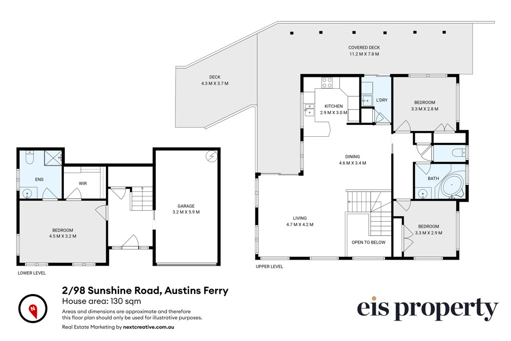 The kitchen is all you need to create some fine culinary feasts, with all the mod cons to aid you to do so in style, with the help of a dishwasher to assist with the clean-up afterwards! The dining space integrates into the living space, allowing room for a six seater table, chairs and side dressers comfortably. A separate laundry with sliding door stepping out onto the deck again, is practical and easy. The upstairs bedroom wing can be closed off from the living space, ideal if you have guests who like some privacy or young children who go to bed early but still need to remain within earshot throughout the day.